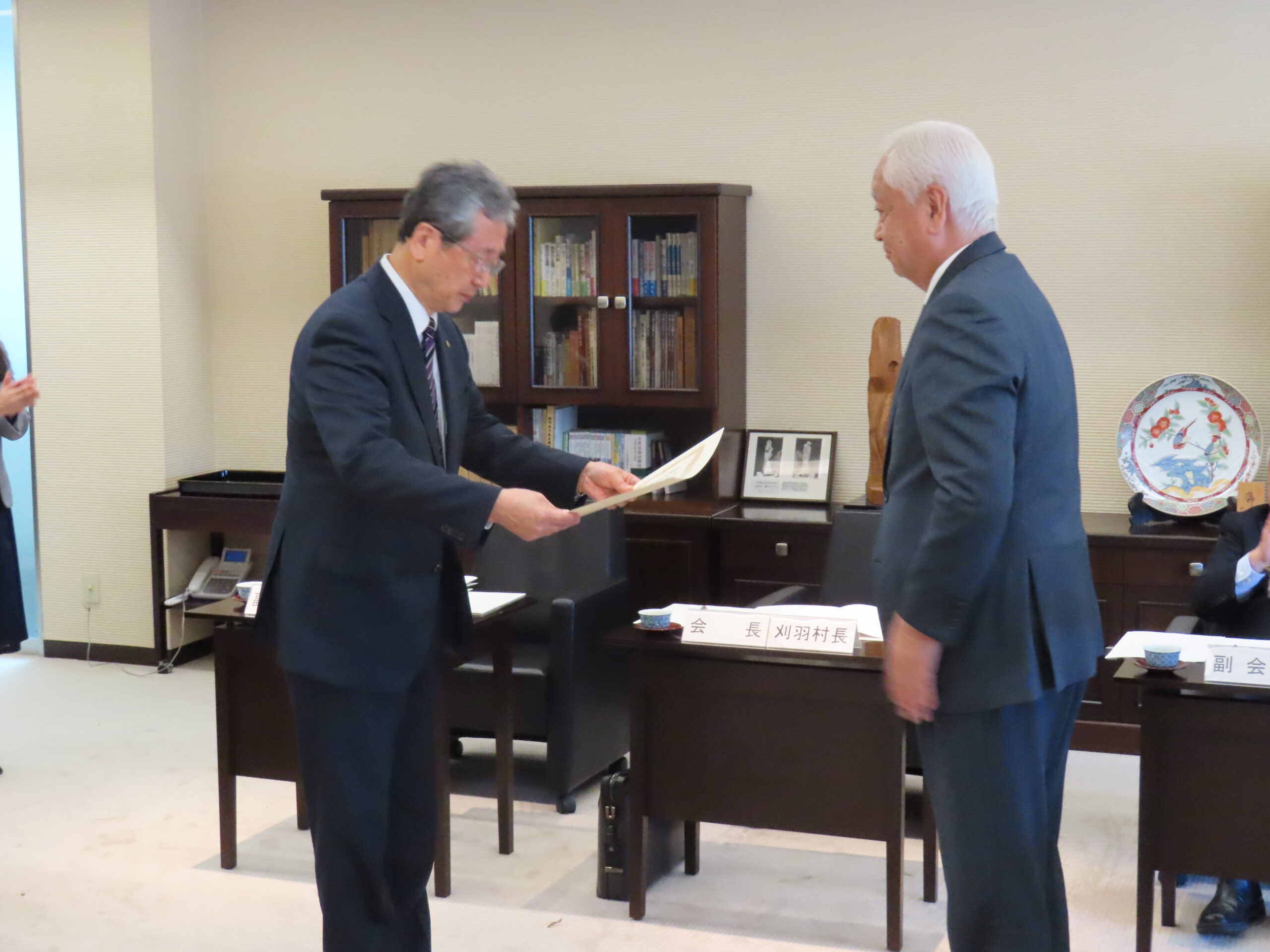 令和7年度第2回定期総会では、全国町村会から自治功労者(町村長3期在職者)として表彰された加藤関川村長に表彰状等を伝達したほか、令和8年度事業計画、会費及び予算が承認されました。